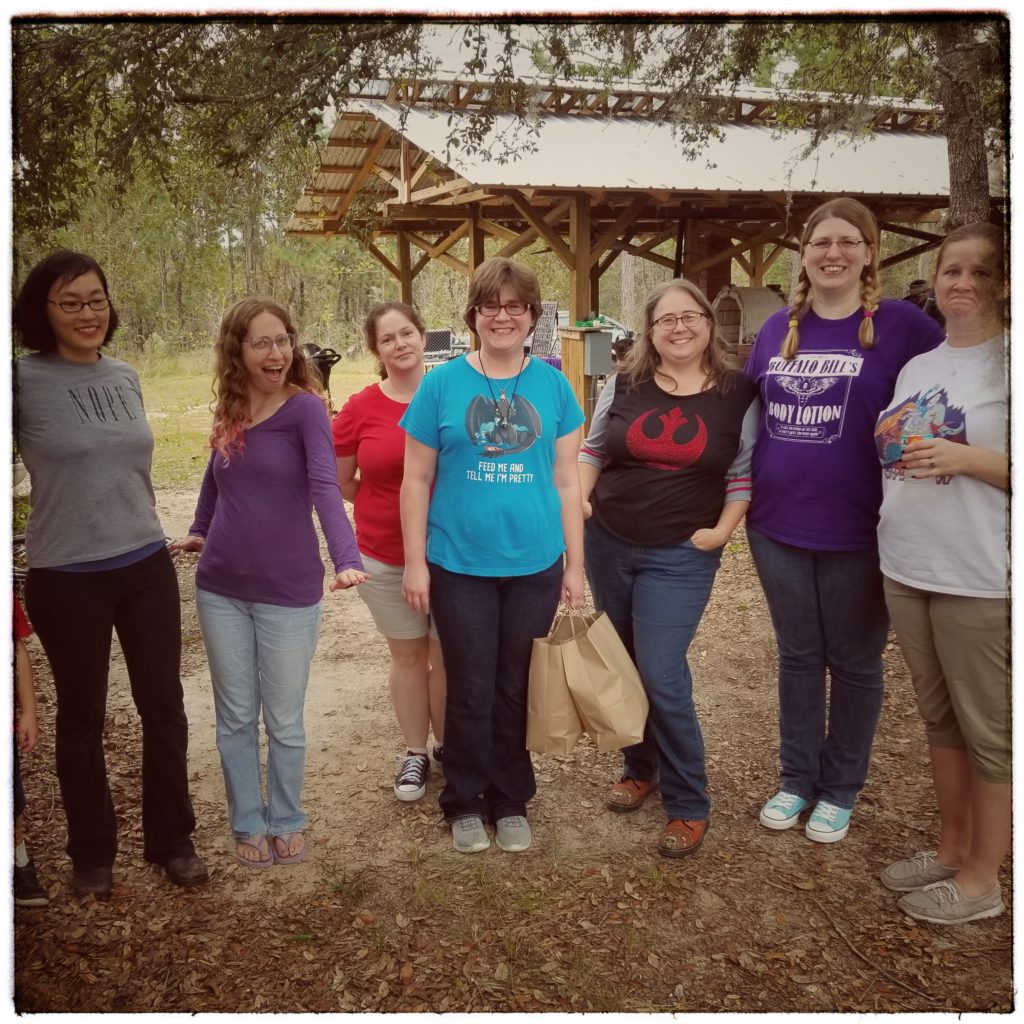 March Meet the Maker Day 17: Customers and Feedback. Here’s a picture of me with some of my regular customers, in my back yard! These people, and others like them but who aren’t within driving distance, are the heart and soul of HaldeCraft. My customers are fun, playful, thoughtful, talented, caring, smart, and I am constantly humbled by and championed by the community that has sprung up around my craft. The feedback they give me in invaluable in helping me know where to direct my energies, be it in new social media forms, product improvements, even shipping materials. I know to listen to these people not just because human beings deserve to be heard, but also because what they tell me is important and should be considered. If someone is bold enough to bring something to me, there’s a nugget of something in what they say that I need to hear.