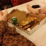 So, we did. We got there, checked into our hotel, walked over to Poe’s grave, walked around the harbor, we ate lunch with family and friends, went back to the con hotel and hung with friends for a few hours (including old family friends who hadn’t seen me in about 45 years) and then instead of living it up and having a wild night in the big city… we ordered pizza and chatted until we fell asleep.