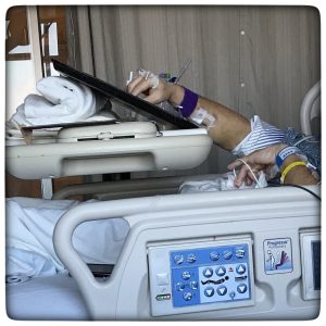 The room always seemed so weird without him. I felt like… should I even be in here? Should I go out into the waiting room? Except this setup is comfy, easy for my laptop, and I have snacks here. It’s just a little odd to be here alone.