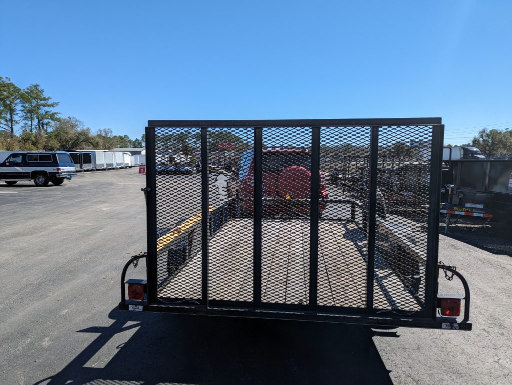 My specifics for a trailer was that it was at least 4×8; I didn’t see the point in buying one that I couldn’t put a sheet of plywood in if I had to. I wanted sides, but Jeff pointed out that he could add sides, easily, to the metal sides that are there – just if I wanted to fill it with dirt, or mulch, and not have it all fall right out. A gate that could double as something I could drive my riding lawn mower up, if a friend wanted to borrow the mower, would be great. And that was pretty much it. Then I listened to Jeff’s advice; get one that’s got a longer tongue, get a longer one than I think I want because longer ones are actually easier to back up in than you think they’re going to be.